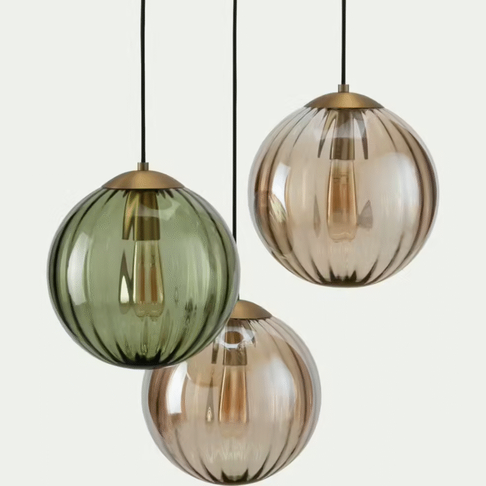 Soyez le premier à laisser votre avis sur “Suspension électrifiée en métal avec trois globes en verre H150cm – vert”